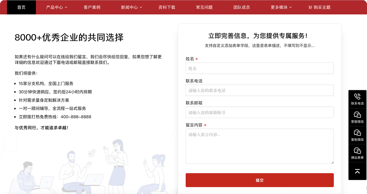 2.Nexus主题还集成了自定义字段的表单插件,企业建站最重要的时候获取销售线索,最终获得客户。那么在网上获得客户最直接的方式就让客户留资,让客户留资就要一个可以完全自定义字段的表单插件: